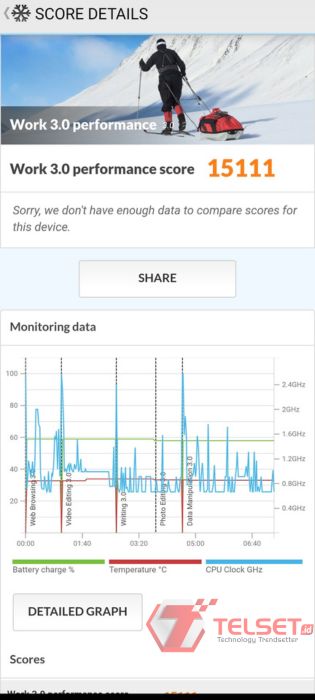 Untuk pengujian PCMark Work 3.0 Perfomance, perangkat ini berhasil mencetak skor 15.111. Dari pengujian ini menandakan perangkat bisa diandalkan untuk menjalankan aplikasi harian untuk kerja dengan baik.