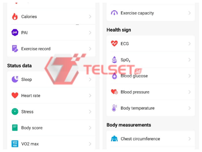 | Fitur | Heart Rate Sensor, Personal Activity Intelligence, SPo2, Fitness Tracker, water ressistant |