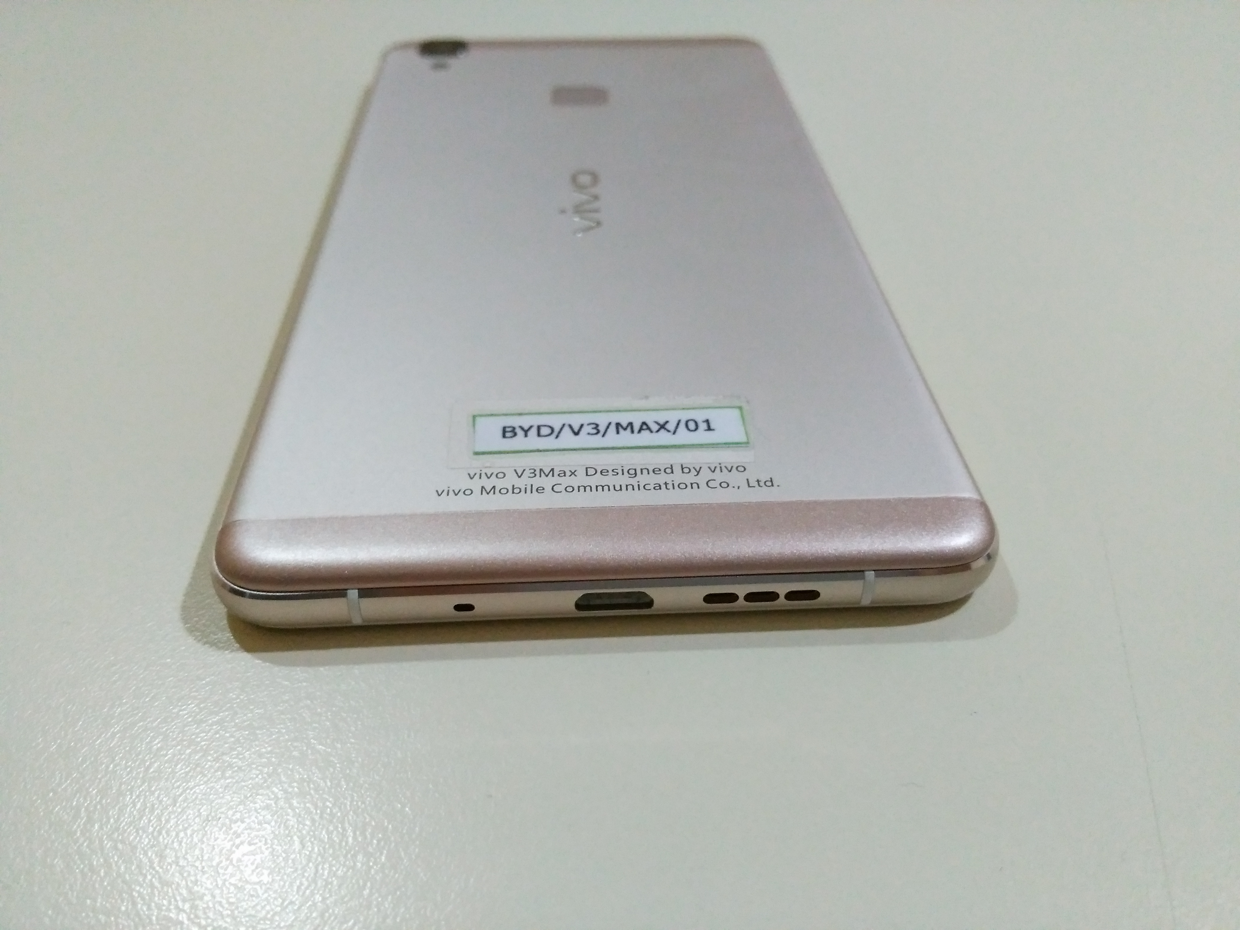 Vivo V3Max membawa banyak hiasan di badannya. Di bagian depan, selain logo Vivo yang terpahat di sudut atas ponsel, Anda juga akan menemukan deretan kamera depan, speaker dan lampu indikator. Berseberangan dengan tombol kapasitif Android di bagian bawah layar. Sayang, karena fitur terakhir ini bukan backlit, sehingga akan membutuhkan perhatian lebih jika Anda terpaksa menggunakan perangkat di dalam kondisi gelap. Jack audio 3,5 mm ada di bagian atas, melengkapi port Micro USB, mikrofon, serta speaker di bagian bawah.