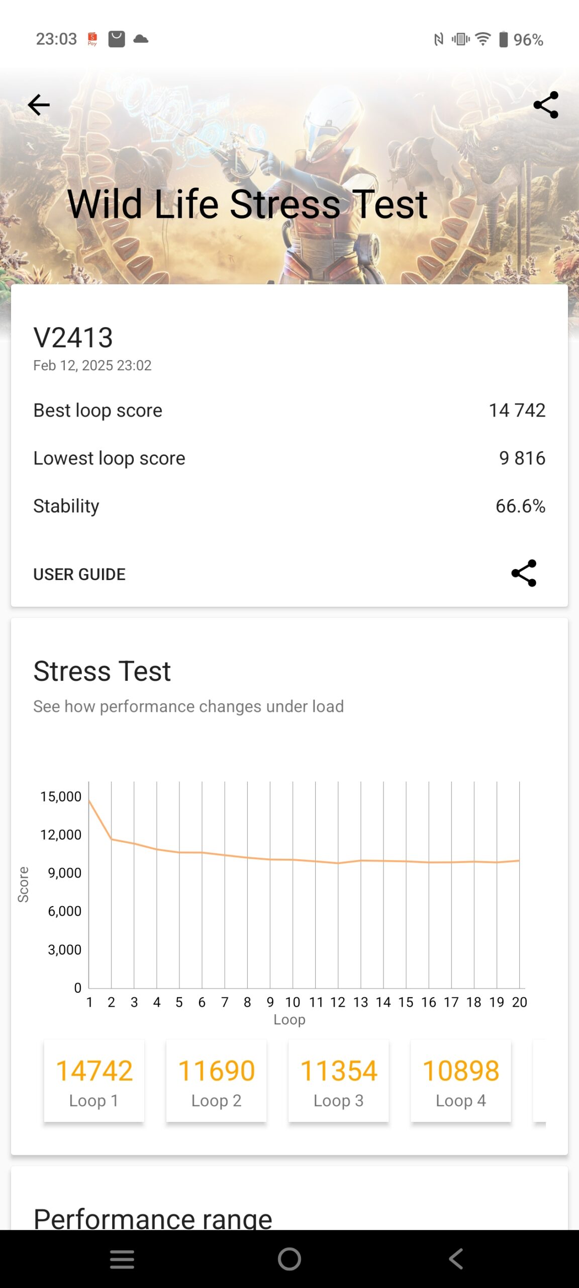 Konfigurasi RAM hingga 16GB dan penyimpanan UFS 4.0 memastikan kecepatan tinggi dalam membuka aplikasi dan memuat data. Pengujian benchmark menunjukkan performa yang hampir menyamai chipset Snapdragon 8 Gen 3, meskipun dalam penggunaan jangka panjang terjadi sedikit throttling saat beban kerja berat yang berkepanjangan.