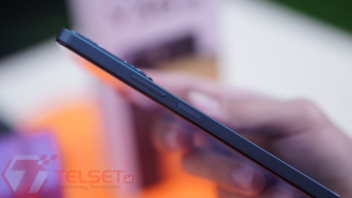 Selanjutnya soal konfigurasi tombol dan konektor. Di bagian kanan ada tombol On/Off dan pengatur volume. Masih di bagian kanan, ada pula sensor fingerprint tepat di bagian atas tombol volume yang mudah diakses oleh sidik jari.