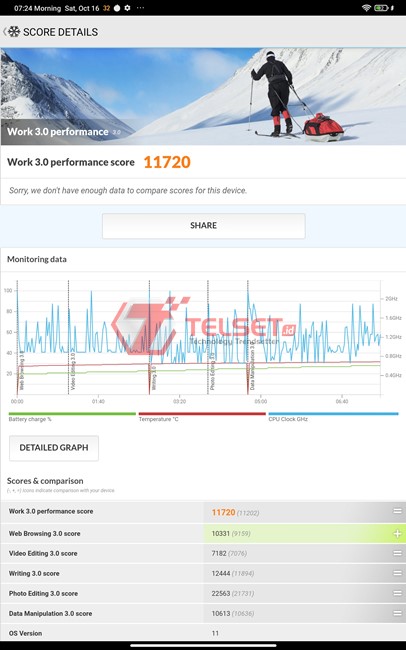 Pengalaman yang positif pun terbukti dengan pengujian kami melalui aplikasi PCMark. Tablet ini meraih skor 11.720 poin. Dibandingkan dengan dua tablet yang sempat kami ulas, Xiaomi Pad 5 memperoleh poin tertinggi.