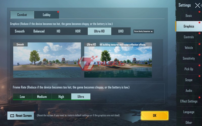 PUBG Mobile dapat ditayangkan dengan kualitas Ultra HD atau 4K, sedangkan COD Mobile bisa dijalankan dengan grafis Very High dengan frame rate Max.